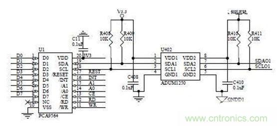 圖2:PCA9564 及雙向隔離電路