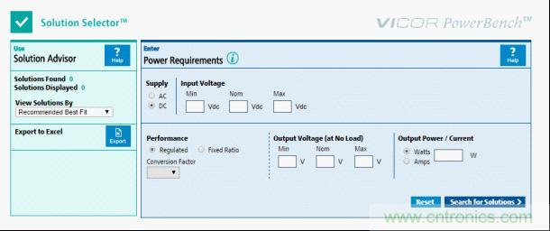 什么樣的產(chǎn)品能夠滿足要求呢?有很多這種信息的來(lái)源。例如,Vicor提供了一種解決方案選擇工具,可以搜索可用元件的數(shù)據(jù)庫(kù),并推薦滿足客戶的輸入和輸出需求的解決方案。利用一個(gè)智能工具,如Vicor解決方案選擇工具(solution selector),可將產(chǎn)生可能元件的候選者名單所需要的時(shí)間縮短到幾乎為零,并且可以很容易地根據(jù)對(duì)應(yīng)用來(lái)說(shuō)最重要的標(biāo)準(zhǔn),為特定設(shè)計(jì)選擇一個(gè)最佳的元件。大多數(shù)工程師恰恰沒有令人奢望的“學(xué)習(xí)時(shí)間”來(lái)手動(dòng)完成這項(xiàng)重要任務(wù)。