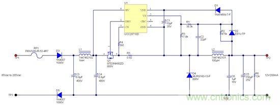 PMP9087 — 85VAC-265VAC 輸入、12V/200mA 無(wú)變壓器偏置電源