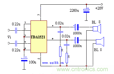在條件許可的情況下,建議采用雙電源工作模式,這樣可以去掉駁接揚聲器的輸出耦合電容(OCL電路),改善頻率響應(yīng)。