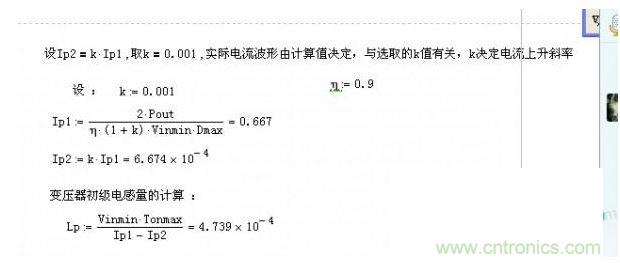 K值就是上面說的電流連續(xù)比上面計算書定義的Ip2是電流上升前沿Ip1是電流上升后沿。所以當(dāng)K=0的時候變壓器是工作在臨界模式以下的為防止計算出錯一般習(xí)慣取0.001.