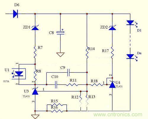 圖2:利用單個(gè)TL431恒流的改進(jìn)型示意圖