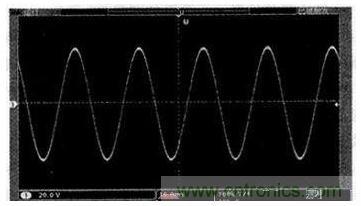 根據(jù)以上思想試制一臺(tái)400 W的樣機(jī),采用IRF3205作為推挽升壓的功率管,HER307作為整流二極管,全橋逆變功率管則采用IRF840.前級(jí)升壓的PWM波頻率設(shè)置為20 kHz,后級(jí)SPWM波的頻率設(shè)置為18 kHz,輸出濾波電感L為1 mH,輸出濾波電容C為4.7μF.實(shí)際測(cè)試正弦交流輸出電壓精度為220 V±1%,頻率精度為50 Hz±0.1%,THD小于1.5%,逆變效率大于87%,其滿負(fù)載時(shí)的試驗(yàn)波形如圖7所示(輸出經(jīng)20 kΩ/100 kΩ電阻分壓測(cè)到)。