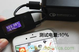 測試電量:10%(原裝充電器;第三方充電器;USB口插板)點(diǎn)擊看大圖