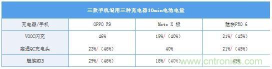 測試手機(jī):OPPO R9、Moto X 極、魅族PRO 6,充電頭:VOOC閃充頭、高通官方QC充電頭、魅族MX5充電頭(UP1220)。其中(OPPO R9應(yīng)搭配VOOC閃充頭使用:VOOC閃充協(xié)議);(Moto X 極應(yīng)搭配高通官方QC充電頭使用:QC2.0快充協(xié)議);(魅族PRO 6應(yīng)搭配MX5充電頭使用:聯(lián)發(fā)科PEP快充協(xié)議)。