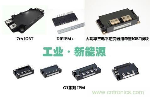 針對伺服驅動器、光伏逆變器等工業(yè)市場需求,三菱電機此次重點推介整流逆變制動一體化模塊DIPIPM+,G1系列IPM,第7代IGBT以及大功率三電平逆變器用單管IGBT模塊四種產(chǎn)品。憑借良好性能獲得市場青睞的第7代IGBT,兩種封裝方式兼容了現(xiàn)有市場主流產(chǎn)品封裝,并采用預涂熱界面材料(PC-TIM)有效降低了50%接觸熱阻。同樣備受期待的產(chǎn)品,還有今年全新開發(fā)的“G1系列IPM”。它采用第7代 IGBT和FWDi芯片,配備多種額定電流對應廣泛用途的工業(yè)設備,有助于通用變頻器、伺服驅動器、電梯等設備降低損耗、減小體積、提高可靠性。