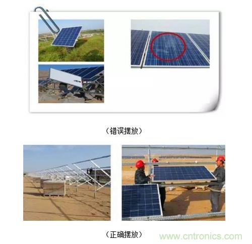 3、組件安裝時(shí),應(yīng)避免上下組件之間用磚塊、木塞等材料進(jìn)行臨時(shí)固定,應(yīng)至少用上部兩個(gè)
