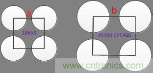 由于21700 /20700 /20650電池容量的增加在實際PACK設(shè)計中需要考慮單支電池安全失控后對周圍電池的影響及問題的可控性,所以需要重新計算電池之間的“安全設(shè)計距離”,這個距離肯定要大于18650的(b 》 a),這進(jìn)一步增加了體積。