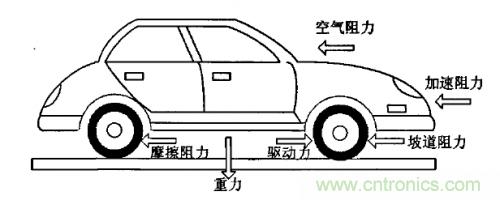 電動汽車在行駛過程中的總體受力分析圖如下: