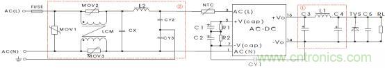 LS03-16BxxSS系列電源,如果需應(yīng)用在電磁環(huán)境比較惡劣的場合中,為使產(chǎn)品工作穩(wěn)定且不被電磁干擾輕易損壞,建議在電源輸入端口增加相應(yīng)的EMC外圍電路,以滿足一定指標(biāo)的電磁兼容性能,如圖(二)所示為推薦電路供參考: