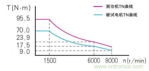 而要模擬被試電機(jī)的實(shí)際運(yùn)行工況,那測(cè)功機(jī)的加載能力,必須覆蓋被測(cè)電機(jī)的全部工況范圍,那才能滿(mǎn)足模擬“所有工況”的要求。簡(jiǎn)單來(lái)說(shuō),就是測(cè)功機(jī)的機(jī)械負(fù)載的TN曲線(xiàn),必須覆蓋被試電機(jī)的TN曲線(xiàn),這樣才能把被試電機(jī)的全程TN特性測(cè)試出來(lái)。