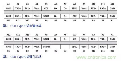 連接埠與連接線的配置如圖2、圖3所示。由于插座連接埠中的訊號(hào)採(cǎi)用對(duì)稱設(shè)計(jì),因此翻轉(zhuǎn)插頭并不會(huì)造成任何問(wèn)題。USB 3.1 SuperSpeed TX/RX、VBUS、GND以及所有其他引腳會(huì)正確連接,不必考慮方向性。從使用者角度來(lái)看,因?yàn)門(mén)ype-C連接線可以任一方向插入,因此是Type-A連接埠的升級(jí)版。