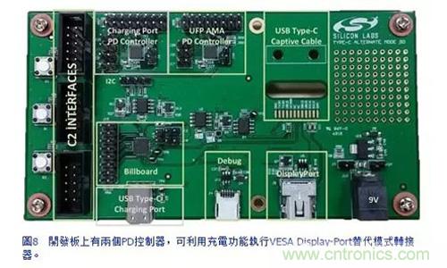 從開(kāi)發(fā)板開(kāi)始(圖8),在提供的韌體上作業(yè),要比建立新平臺(tái)并從頭開(kāi)始編寫(xiě)韌體來(lái)得輕松、快速。制造商和供應(yīng)商借此可以為T(mén)ype-C解決方案提供更多功能,速度也比競(jìng)爭(zhēng)對(duì)手更快。