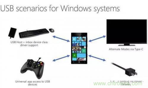 微軟Windows 10引入對(duì)Type-C的支持,不僅桌面版Windows 10原生支持USB Type-C接口,手機(jī)版Windows 10也支持,可以輕松實(shí)現(xiàn)搭載Windows 10操作系統(tǒng)的手機(jī)與USB主設(shè)備或者是USB配件兩者之間進(jìn)行數(shù)據(jù)交換以及視頻共享。例如:手機(jī)與USB外圍設(shè)備交互數(shù)據(jù),支持XboxOne遙控器、鼠標(biāo)、鍵盤、插座以及使用USB Type-C接口外接顯示器或電視等,Type –C或?qū)㈤_創(chuàng)連接新模式。