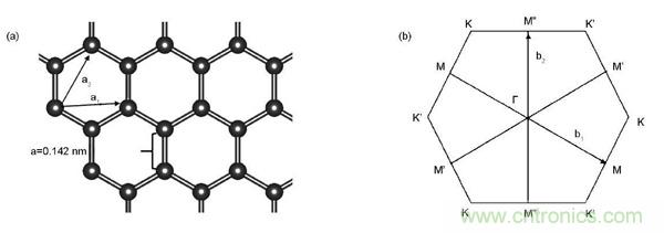 圖1.石墨烯的結(jié)構(gòu)特征:(1)晶體結(jié)構(gòu);(2)布里淵區(qū)
