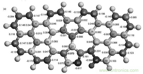 圖9.N摻雜石墨烯的(a)原子電荷密度和(b)自旋密度