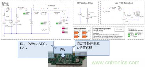 控制軟件采用了先進(jìn)的基于模型的設(shè)計(jì)方法。包括對(duì)整個(gè)電源管理在VHDL-AMS中進(jìn)行建模[8]。通過(guò)經(jīng)IEEE標(biāo)準(zhǔn)化處理的模型描述語(yǔ)言,也可根據(jù)硬件特性對(duì)控制系統(tǒng)進(jìn)行建模和模擬,以及通過(guò)自動(dòng)編碼將控制系統(tǒng)以自動(dòng)化方式轉(zhuǎn)移到目標(biāo)硬件[9]。
