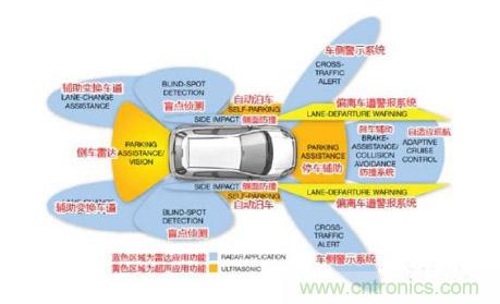 ADAS(高級輔助駕駛系統(tǒng)),是指利用安裝于車上各式各樣的傳感器,在第一時間收集車內(nèi)的環(huán)境數(shù)據(jù),進行靜、動態(tài)物體的辨識、偵測與追蹤等技術(shù)上的處理,從而能夠讓駕駛者在最快的時間察覺可能發(fā)生的危險。通常包括導航與實時交通系統(tǒng)TMC,電子警察系統(tǒng)ISA 、自適應巡航ACC 、車道偏移報警系統(tǒng)LDWS、車道保持系統(tǒng),碰撞避免或預碰撞系統(tǒng)、夜視系統(tǒng)、自適應燈光控制、行人保護系統(tǒng)、自動泊車系統(tǒng)、交通標志識別、盲點探測,駕駛員疲勞探測、下坡控制系統(tǒng)和電動汽車報警系統(tǒng)等。