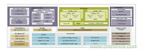 S32V234是NXP的S32V系列產(chǎn)品中2015年推出的ADAS處理器,支持CPU(4顆ARM V8架構(gòu)A53和M4)、GPU(GC3000)和圖像識別處理(CogniVue APEX2 processors)的異構(gòu)計算,5W的低功耗設計。通過CogniVue APEX2 processors能同時支持四路汽車攝像頭(前、后、左、右),抽取圖像并分類,同時GPU能實時3D建模,計算量達到50GFLOPs。所以按照此硬件架構(gòu)可完成360度環(huán)視,完成自動泊車等功能。同時,該芯片預留了支持毫米波雷達、激光雷達、超聲波的接口,便于實現(xiàn)多傳感器的融合,該芯片支持ISO 26262 ASIL B標準。