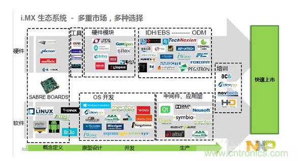 除了S32V系列,被收購的飛思卡爾有一款著名的i.MX系列芯片也可以作為中央處理器。i.MX特別是i.MX6在汽車上,特別是車載信息系統(tǒng)上有大量的應用。眾多的汽車廠商使用i.MX。