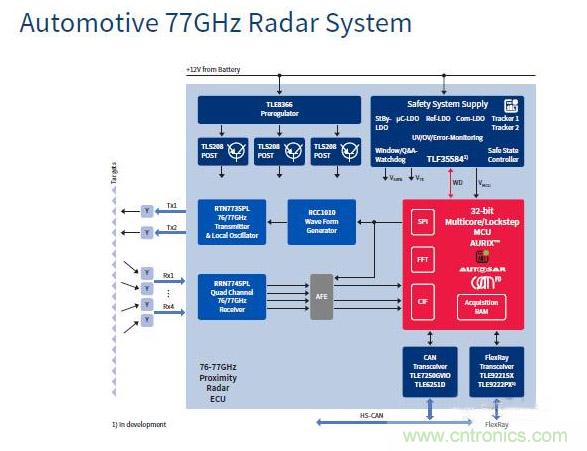 作為汽車電子、功率半導體以及智能卡芯片的全球市場領袖,英飛凌一直以來為汽車等工業(yè)應用提供半導體和系統(tǒng)解決方案。英飛凌在24/77/79G雷達、激光雷達等傳感器器件及處理芯片方面都具有領先的技術(shù)。除此之外,在車身控制、安全氣囊、EPS、TPMS等等各方面都有自己的解決方案。
