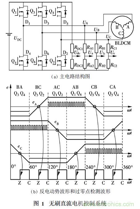 反電動勢過零點檢測方法簡單準確,使用軟件算法判斷反電勢過零點. 硬件電路只要選擇阻值和功率都合適的電阻用于分壓,不需要重構電機中心點,也不需要低通濾波器,信號沒有相位延時,也不采用比較器來檢測過零點. 硬件電路結構簡單, 適合低成本應用.