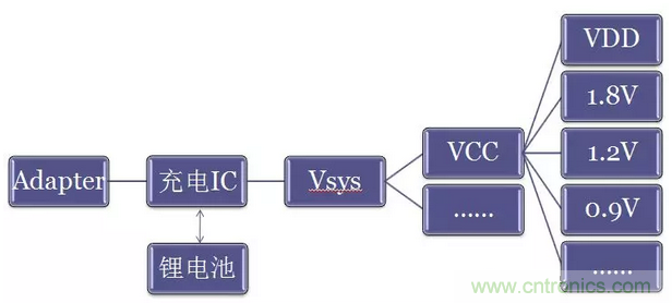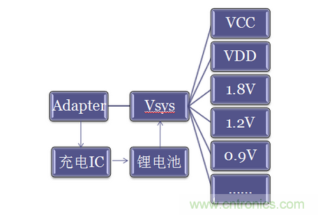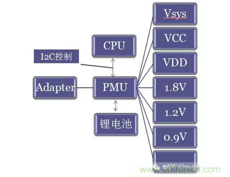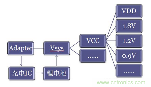 下圖為一般電源管理系統(tǒng),原始分立電源管理系統(tǒng),模型一: