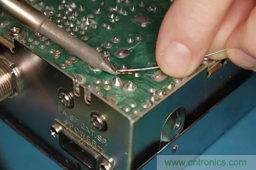 接下來(lái)修剪多余的電線至焊點(diǎn)處,并用助焊劑清潔劑對(duì)焊點(diǎn)進(jìn)行清理。