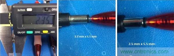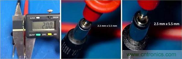 顯然,用一把尺子或者游標(biāo)卡尺(如果手邊有的話)來(lái)準(zhǔn)確測(cè)量或辨別2.1mm或者2.5mm的小孔內(nèi)徑是很難的。這就留給我們兩個(gè)選擇: