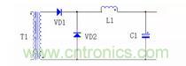 DC/DC 的整流二極管和續(xù)流管的反向恢復(fù)電流會(huì)導(dǎo)致二極管的反向電壓出現(xiàn)很高的電壓尖峰,下圖 7 是正激電路的輸出濾波電路。