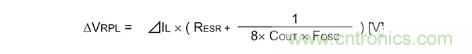 以下是表示輸出紋波電壓的公式。電容器的紋波電壓和ESR的紋波由于相位偏離,故無法進行單純的加算,不過卻是紋波電壓的最差值概算常用的公式。