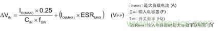 輸入紋波電壓ΔVIN用以下公式計算。