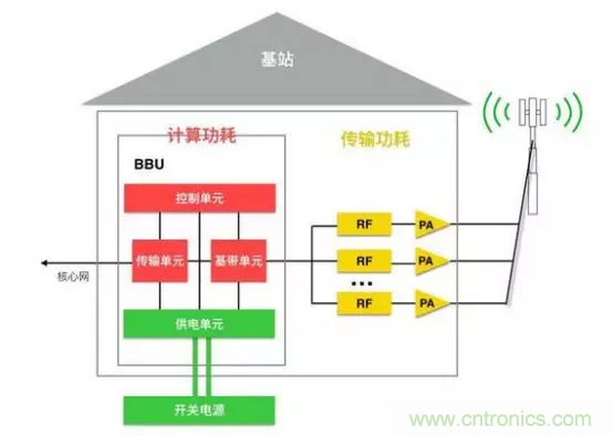 據(jù)專業(yè)人士分析,部署初期,5G網(wǎng)絡(luò)主要采用CU和DU合設(shè)+AAU的設(shè)備方案,即在基站側(cè)采用BBU+AAU單元的建設(shè)模式。其中,BBU單元安裝在機(jī)房或室外機(jī)柜內(nèi),集成RRU和大規(guī)模天線陣列功能的AAU單元安裝在室外天面。由于5G采用MIMO技術(shù),BBU功耗將比現(xiàn)網(wǎng)4G系統(tǒng)的BBU功耗增加2倍,AAU功耗將比現(xiàn)網(wǎng)4G系統(tǒng)的AAU功耗增加2-3倍。