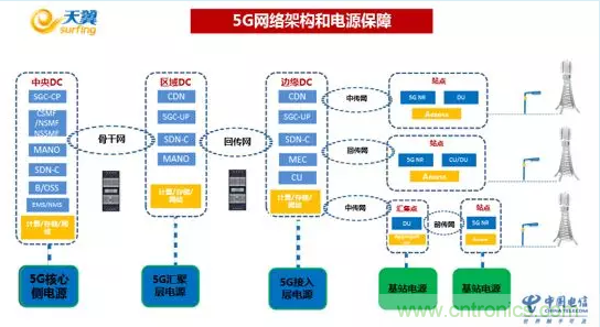 圖2 5G網(wǎng)絡(luò)架構(gòu)和電源保障(來源:中國電信)