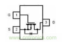 仔細看看你會發(fā)現(xiàn),這兩個圖似乎有差別,對了,這實際上是兩種不同的增強型場效應管,第一個那個叫N溝道增強型場效應管,第二個那個叫P溝道增強型場效應管,它們的的作用是剛好相反的。前面說過,場效應管是用電控制的開關(guān),那么我們就先講一下怎么使用它來當開關(guān)的,從圖中我們可以看到它也像三極管一樣有三個腳,這三個腳分別叫做柵極(G)、源極(S)和漏極(D),mpn中的貼片元件示意圖是這個樣子: