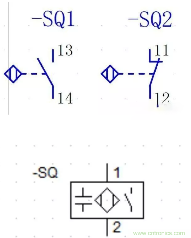 它有感應(yīng)頭、高頻振蕩器、放大器和外殼組成。接近開關(guān)實(shí)物圖和圖形文字符號(hào)如下: