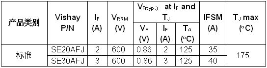 對(duì)于空間有限的應(yīng)用,新器件可提供2A和3A的正向電流和高電流密度,采用高度僅有0.95mm的表面貼裝SlimSMA DO-221AC封裝。