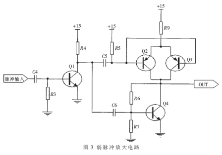 由于數(shù)字電路輸出的TTL電平脈沖信號(hào)驅(qū)動(dòng)能力很弱,無法直接驅(qū)動(dòng)大功率的MOS管,所以要先對(duì)弱脈沖信號(hào)進(jìn)行放大,才能驅(qū)動(dòng)后面的MOS管。放大電路如圖3所示。