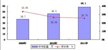 - 到2011年,中國車載視聽系統(tǒng)終端的累計(jì)數(shù)量將會達(dá)到54.6萬臺