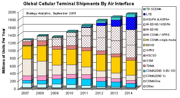GaAs功放在無線手機射頻前端應用中一直保持較高的使用率,盡管有CMOS功放虎視眈眈,但在3G領域,GaAs以其高線性度、高效率的特性處于絕對的市場領先地位,而CMOS功放由于性能、功耗等因素影響,只能用于短距離、低功率的領域,比如WLAN、PHS等。隨著3G的演進,GaAs的市場空間將穩(wěn)步上升,下圖為市場調研公司提供的全球手機終端出貨情況。