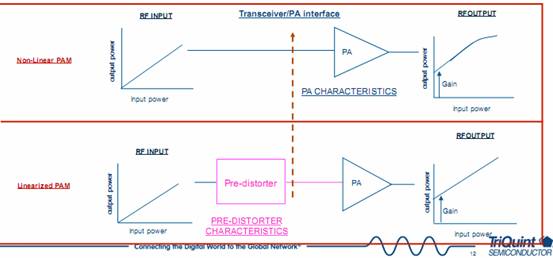 3G/4G時(shí)代對PA的要求更高,包括更線性的放大倍數(shù),更高的峰谷比率,更高的效率。因此下一代的趨勢是極化的EDGE向線性的EDGE轉(zhuǎn)移。一是它可以把相位和輔助信號合成在一起,從控制角度來看也相對簡單,未來也將走向多模多頻。