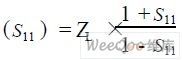 在載波頻率為13. 56 MHz時,通過在TX1 和TX2 兩點測量天線線路的反射系數(shù)(即參數(shù)S11 )來手動調(diào)諧,直到天線電路的輸入阻抗達到目標,計算方程如下:
