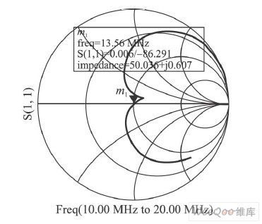 56MHz時,參數(shù)S11近似為0。這種檢查流程已成功經(jīng)過幾種不同阻抗的RFID天線檢測,在頻率為13.