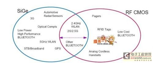 SiGe BiCMOS 工藝技術幾乎與硅半導體超大規(guī)模集成電路(VLSI)行業(yè)中的所有新工藝技術兼容,包括絕緣體硅(SOI)技術和溝道隔離技術。隨著擊穿電壓和高性能無源部件集成技術的發(fā)展,SiGe 正逐漸滲透至傳統(tǒng)的GaAs領地—即手機功率放大器應用的領域。