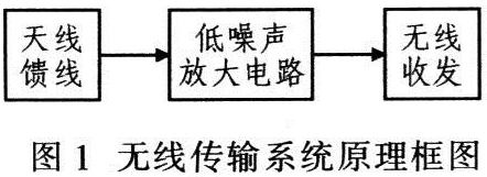 圖1為無線傳輸系統(tǒng)原理框圖。接收端的功率放大電路模塊由于信道具有衰減特性,經(jīng)遠(yuǎn)距離傳輸?shù)竭_(dá)接收端的射頻信號電平多是μV數(shù)量級,因此需放大微弱的射頻信號。同時,信道中還存許多干擾信號,即噪聲,所以該系統(tǒng)設(shè)計(jì)應(yīng)采用低噪聲的射頻功率放大電路。