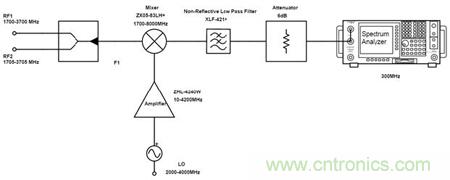 以下將組成測試電路對比傳統(tǒng)濾波器和無反射式濾波器分別配對相同混頻器的性能。