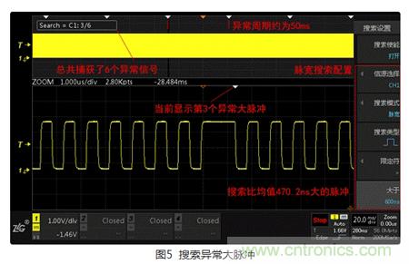 ZDS2000示波器提供了觸發(fā)、測量、搜索、FFT等多種強大功能,但異常信號的不確定性非常大,實際應用中,還是應視具體情況,靈活組合運用,才能最大程度的提高工作效率。