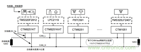 與485類似,CAN-bus也是以總線的方式進行通信的,所有的CAN節(jié)點都掛在一對差分線上。但CAN總線中的節(jié)點不存在主從的概念,當節(jié)點有數據需要上傳時可自主、即時發(fā)送,先進的仲裁機制保證數據不會沖突。
