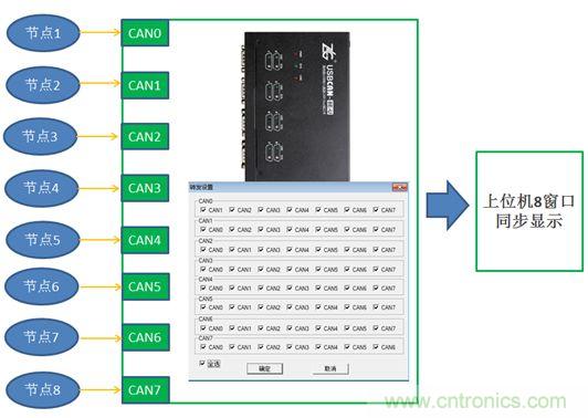 若將每個節(jié)點單獨取出做測試,則必然破壞原有通信規(guī)則。如何在不破壞原有通信的基礎上搞清楚一個陌生的收發(fā)協議呢?所謂工欲善其事,必先利其器。您需要一個能同時收發(fā)、轉送多路CAN數據的CAN卡,USBCAN-8E-U正是為這種應用而生。