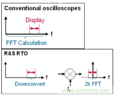 傳統(tǒng)的做法是,示波器把信號樣本采集下來,然后通過軟件算法來進行軟件運算,速度非常慢,我們的方式通過專用的硬件加速集成電路(ASIC),把fft 功能交給這個硬件電路來實現(xiàn),速度快到幾乎不影響原始波形的刷新速率。當(dāng)然這個ASI 是需要花大把銀子來研發(fā)的。核心對比用到了專用的DDC 電路。